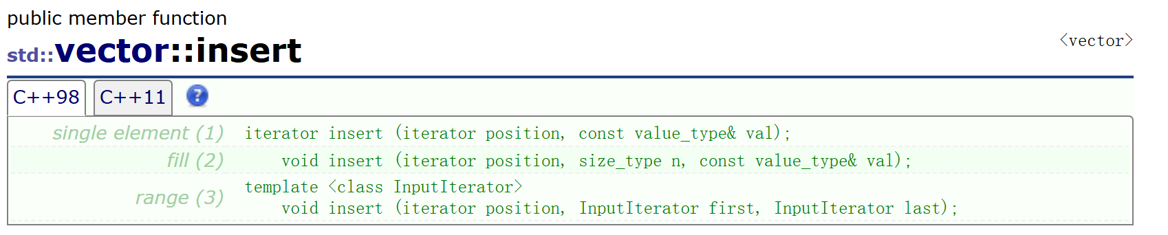 C++标准库中的insert函数实现了三个版本,这里就简单实现第一个版本就行。