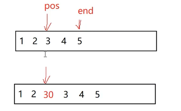 思路很简单,就是把pos位置之后的值依次向后挪动,再把要插入的值放在pos位置,最后别忘记要让_finish++。