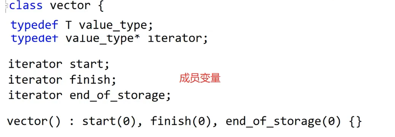 为了和标准库尽量统一,所以这里我们也使用迭代器类型的变量来实现vector。