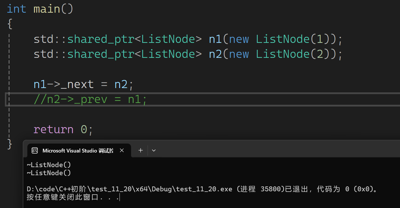 shared_ptr大多数情况下管理资源都非常合适,支持RAII,也支持拷贝。但是在循环引用场景下会导致资源没得到释放,出现内存泄漏的问题。