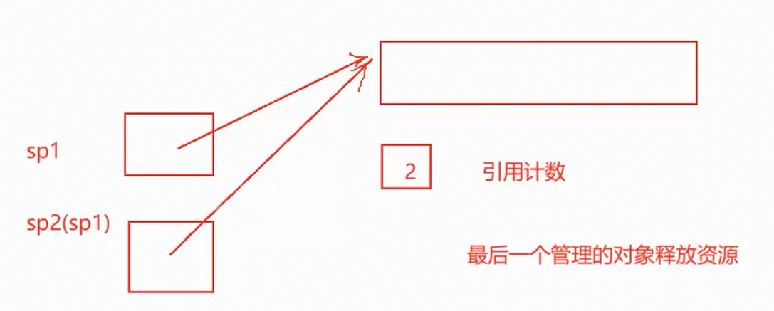 构造智能指针对象时,来一份资源,就new一个引用计数出来。多个shared_ptr指向资源时就++引用计数,shared_ptr对象析构时就--引用计数,引用计数减到0时代表当前析构的shared_ptr是最后一个管理资源的对象,则析构资源。