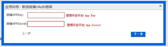 1. 填入的App Key错误。 这里需要填写微博开放平台的App Key、App Secret 。