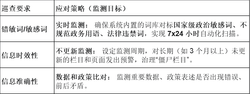 要成功通过网监巡查并保持合规,网站监测必须从内容、功能、安全三个维度全面对标监管要求: