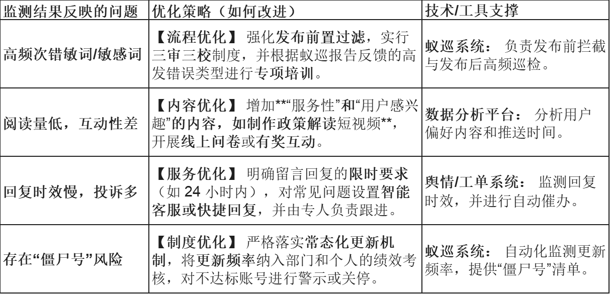 基于上述监测结果,应制定相应的优化策略,形成“监测 →评估 → 优化”的闭环: