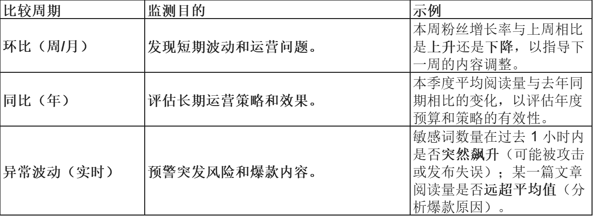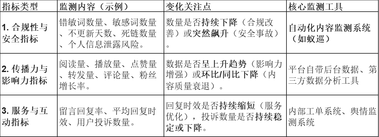 - 传播指标阈值: 如果平均阅读量连续三周环比下降超过 30%,则触发“内容衰退”预警,要求内容团队介入分析。
