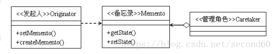 1. Originator: 发起人记录当前时刻的内部状态,负责创建和恢复备忘录数据。