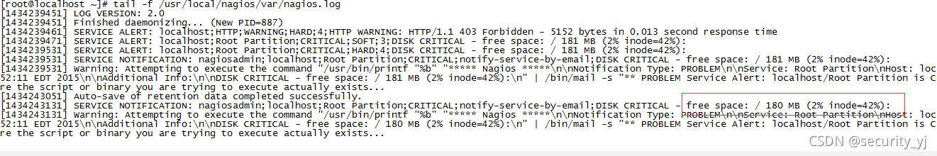 下图可以看到磁盘空间不足的告警