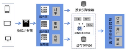 微服务架构,主要是中间层分解,将系统拆分成很多小应用(微 服务),微服务可以部署在不同的服务器上,也可以部署在相同的服 务器不同的容器上。当前应用产生的故障不会影响到其他应用,单应 用的负载也不会影响到其他应用,其代表框架有 Spring cloud、Dubbo 等。其架构图如下所示: