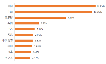 从全球分布来看,高活度攻击源主要分布在美国、中国,其次是俄罗斯。从国内来看,高活 度攻击源在沿海和经济发达地区分布密集,其中中国台湾、浙江、中国香港和安徽的高活度攻击源 最多。这些地区往往网络基础设施