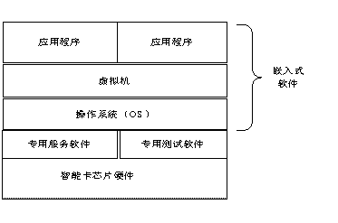 嵌入式软件指存储在智能卡卡内并可运行的软件,即前文缩略语中提到的COS,其主要功能是控制智能卡和外界的信息交换,管理智能卡的存储器并完成各种命令的处理。嵌入式软件可存储在非易失性非编程存储器(只读存储器)内,也可存储于非易失性可编程存储器(例如