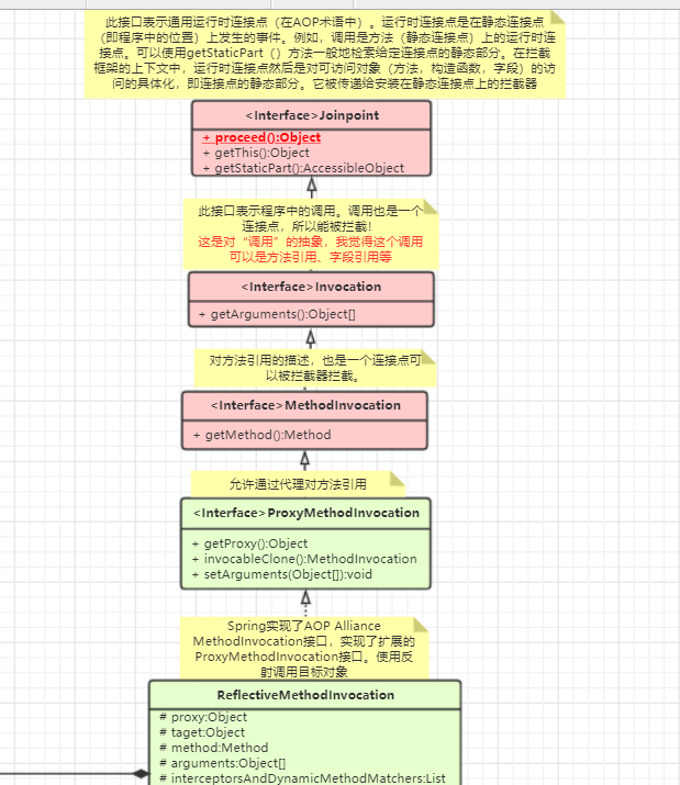 - MethodInvocation.proceed() 方法会从连接器链中拿出一个拦截器去执行,同时推进拦截器的执行位置,并自己传入其中。