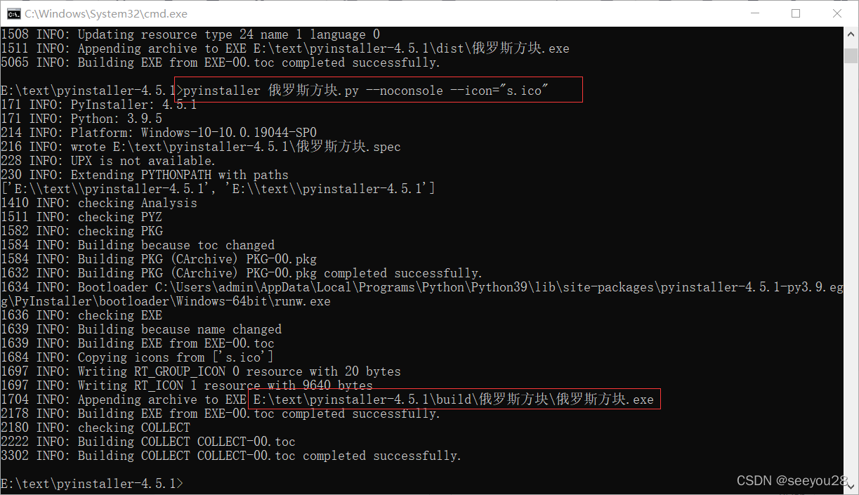 使用pyinstaller第三方库对python代码进行打包,得到可以在没有python环境的电脑下运行的exe应用程序