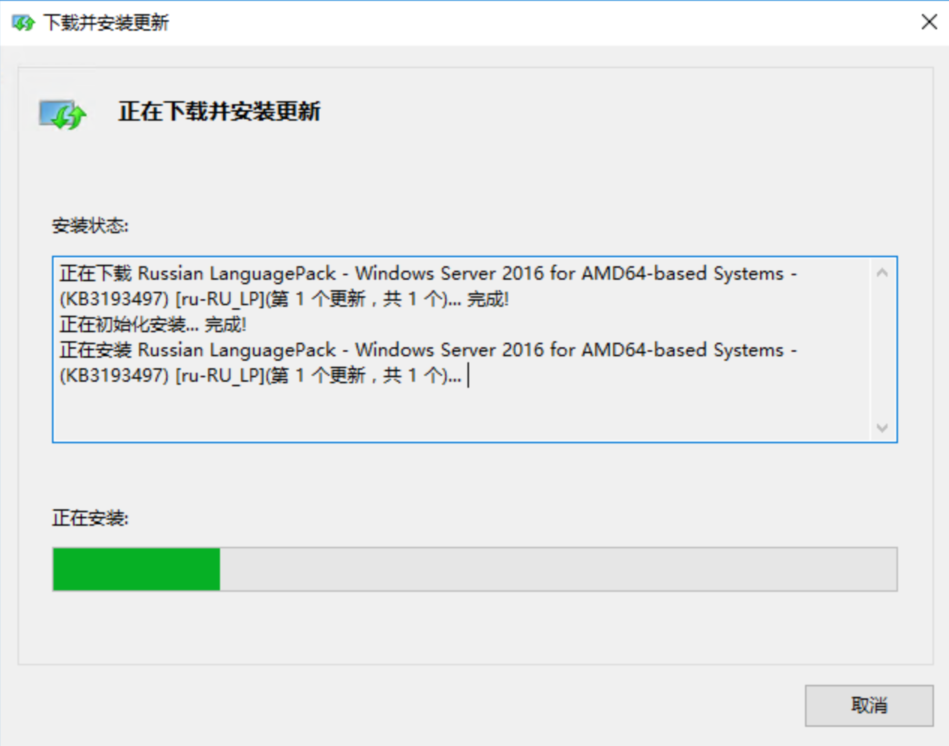 6. 此时会自动下载并安装刚添加的语言,如下图所示:
