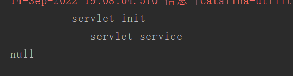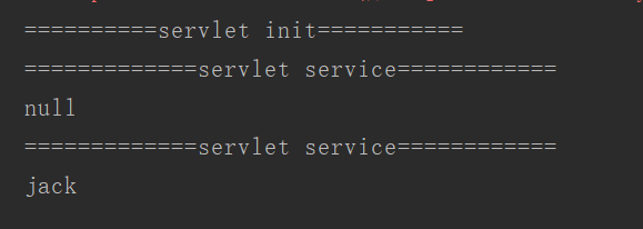 可以看到,点击回车后,idea控制台输出了我在初始方法和service方法中写的输出语句,servlet被成功的初始化了,后面是null是因为我在地址栏没有提交一个参数,所以获取到的是null,现在我提交一个参数username看看效果