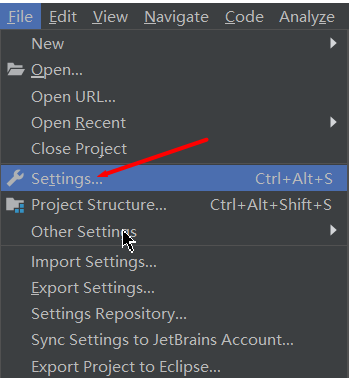 点击File中的Settings设置