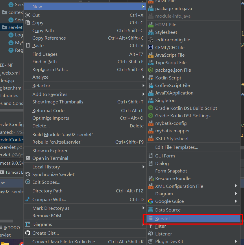 在新建里面找到servlet选项