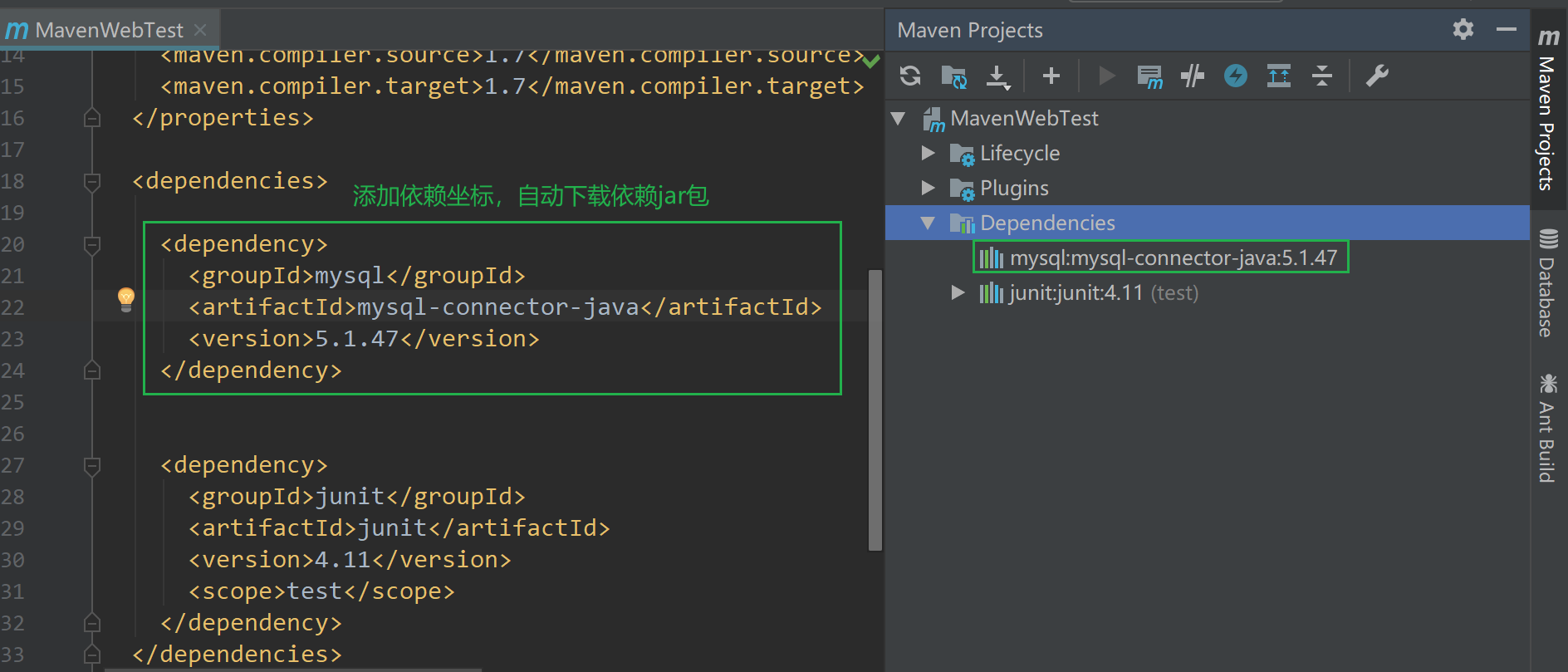 注意:如果本地仓库没有相应版本的jar,会自动到中央仓库去找,然后自动下载,并缓存到本地。下次再使用jar包,就直接在本地中查找了