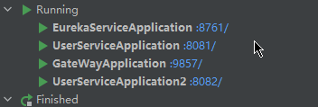 备注:userService2是user-service的一个复制模块,功能一模一样,只是yml文件中spring.name不同而已。形成了一个user集群