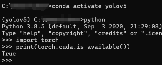 conda create -n yolo_env python=3.8 # -n后面对应的是名字;3.8是指定的python版本