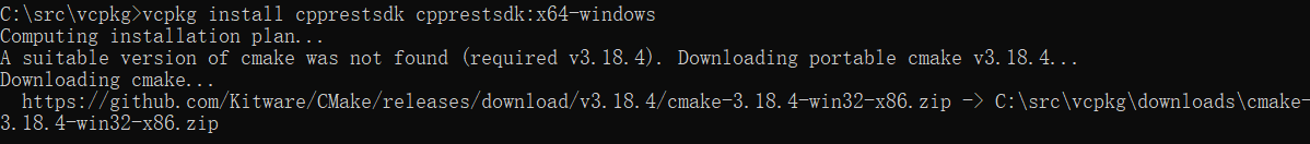 vcpkg install cpprestsdk cpprestsdk:x64-windows