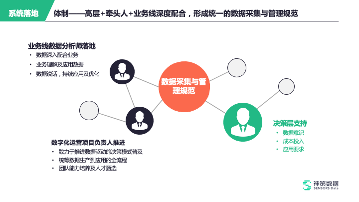 体制为连接关系,强调数据采集到应用全流程规范清晰、负责人明确。