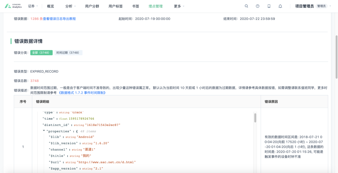 数据校验也是数据采集过程中非常核心、非常必要的一个环节。很多时候并不是没有采集数据,而是采集的数据无法满足诉求,以及其准确性也欠考虑。神策分析的埋点管理有实时导入数据查询功能,可对用户的每一个动作进行判断,其是否入库准确数据。其次,还可以通过用户行为序列查看最终入库数据是否准确。