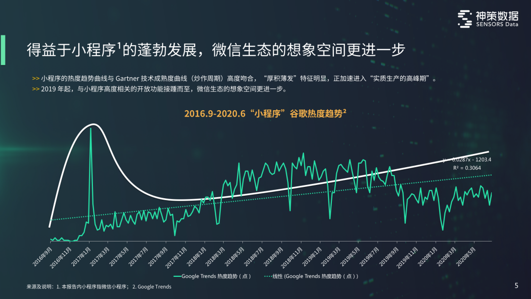 同时,神策数据用户行为洞察研究院《微信生态与小程序发展趋势洞察》显示,小程序的蓬勃发展,使得微信生态有了更大的想象空间。