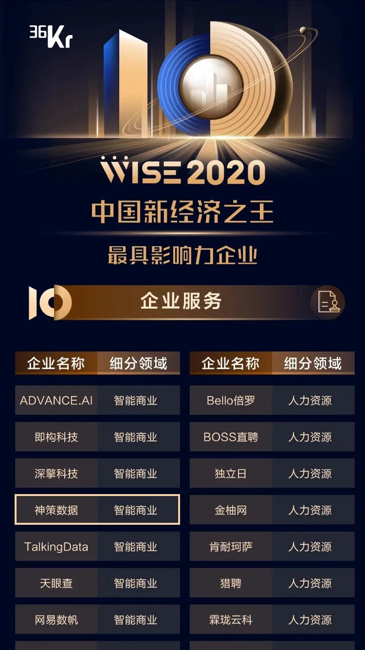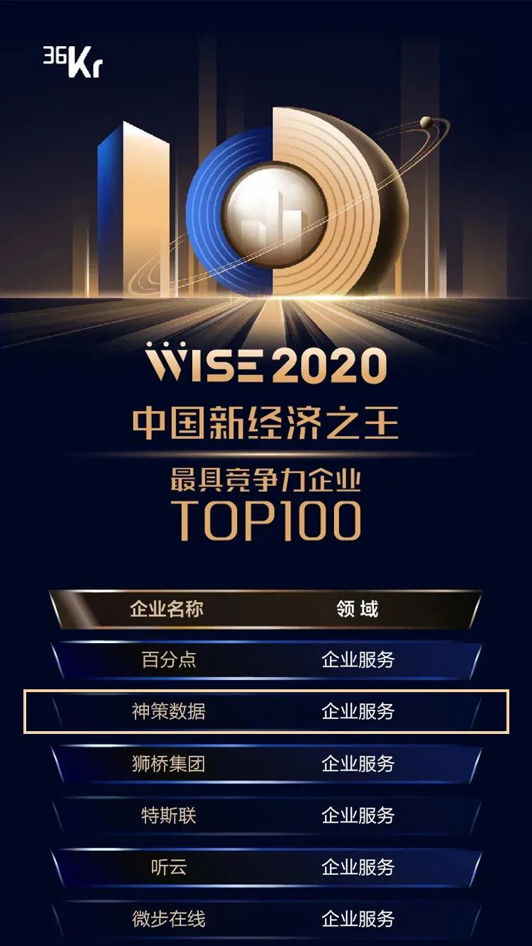 在36氪举办的2020年新经济之王500强公司评选中,神策数据获得最具竞争力及最具影响力企业双奖项。此次评选通过问卷调研方式,收集了上千家企业的重要数据并结合专家访谈及人气投票进行综合评判。