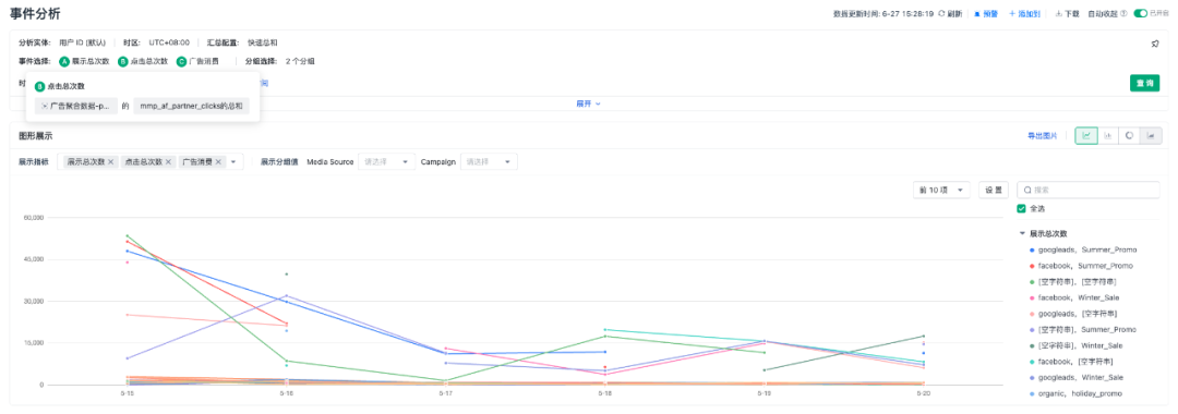 面对出海企业在广告投放中渠道繁多、数据分散的挑战,神策分析 3.0.3 版本新增 AppsFlyer 聚合展点消数据接入,并结合多维分析模型,帮助企业在同一视图下关联广告展示、点击、消费数据与用户行为指标,实现投放效果与 ROI 的动态分析,快速定位高效渠道。