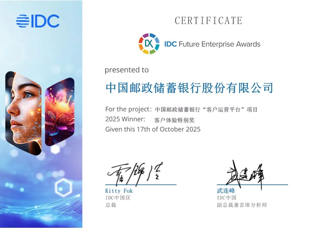 在数字化转型浪潮中,客户体验已成为金融机构的核心竞争力。近日,全球领先的 IT 市场研究和咨询公司 IDC 正式公布 2025 IDC 未来企业大奖获奖名单,神策数据与中国邮政储蓄银行股份有限公司(以下简称“邮储银行”)共建的“客户运营平台”项目成功荣获“客户体验特别奖”。