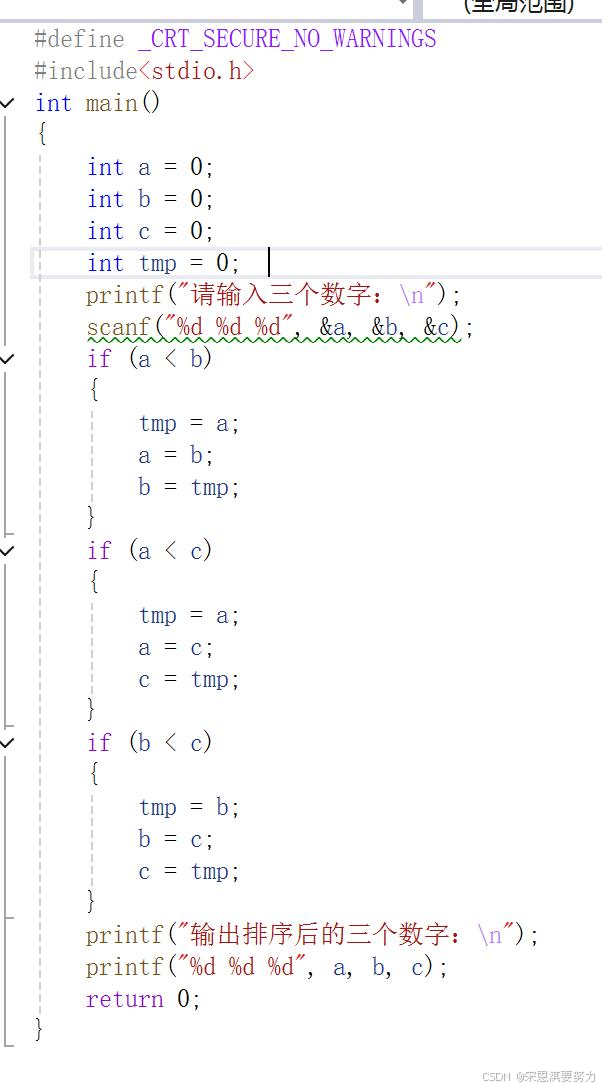 下面就是把abc当作三个存储数值的库,规定a存储最大的数字,b其次,c最小。