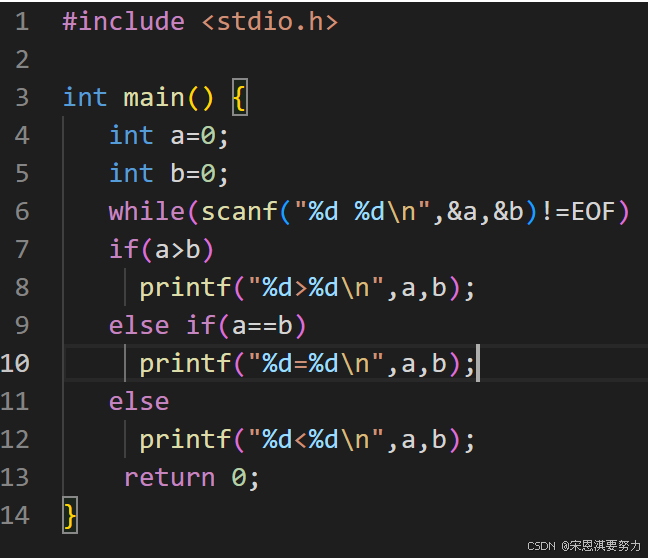 这题难点在于需要多组输入,需要用到while循环语句(下一篇博客会说到),现在可以简单记忆一下:while(scanf("%d",&a))!=EOF)