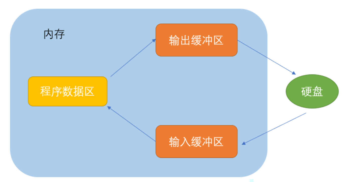 ANSIC 标准采用“缓冲文件系统” 处理的数据文件的,所谓缓冲文件系统是指系统自动地在内存中为程序中每⼀个正在使用的文件开辟⼀块“文件缓冲区”。从内存向磁盘输出数据会先送到内存中的缓冲区,装满缓冲区后才⼀起送到磁盘上。如果从磁盘向计算机读入数据,则从磁盘文件中读取数据输⼊到内存缓冲区(充满缓冲区),然后再从缓冲区逐个地将数据送到程序数据区(程序变量等)。缓冲区的大小根据C编译系统决定的。
