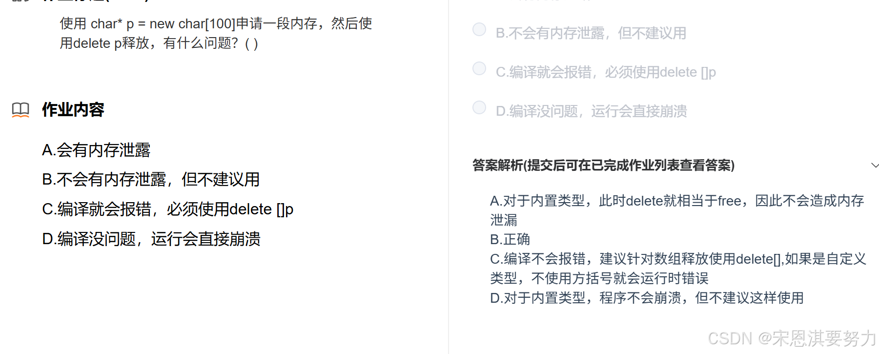 通过上述两个全局函数的实现知道,operator new 实际也是通过malloc来申请空间,如果malloc申请空间成功就直接返回,否则执行用户提供的空间不足应对措施,如果用户提供该措施就继续申请,否则就抛异常。operator delete 最终是通过free来释放空间的