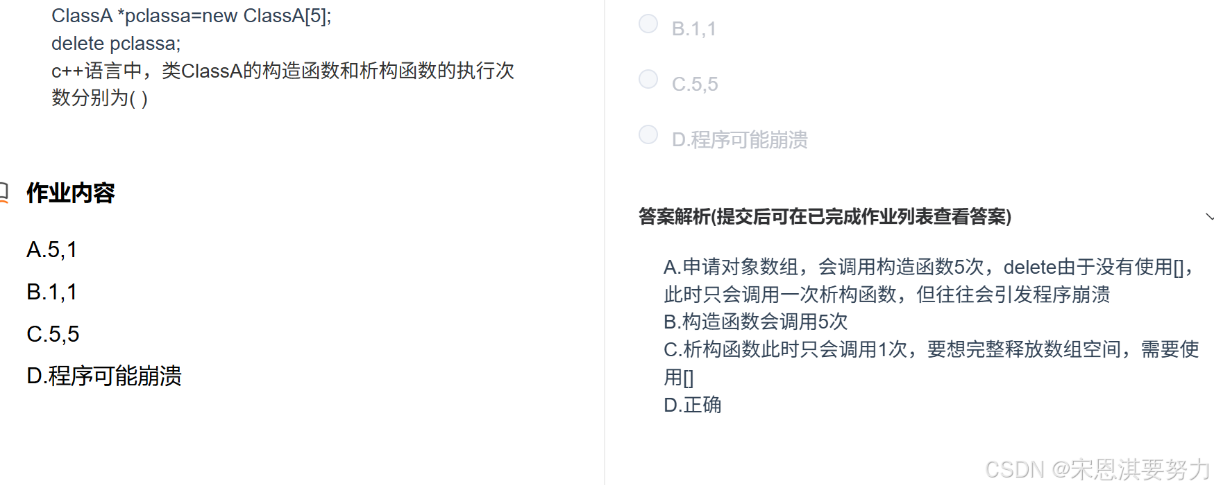 在申请空间后会调用构造函数完成对象的初始化,delete在释放空间前会调用析构函数完成