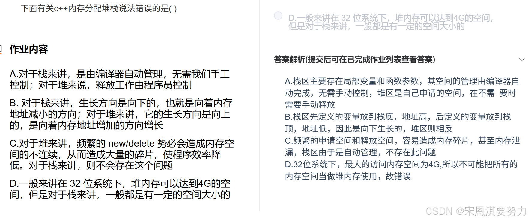 1. 栈:存储函数内局部变量、函数参数、返回值,由编译器自动分配释放,栈是向下增长的。