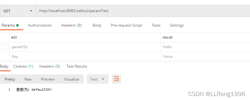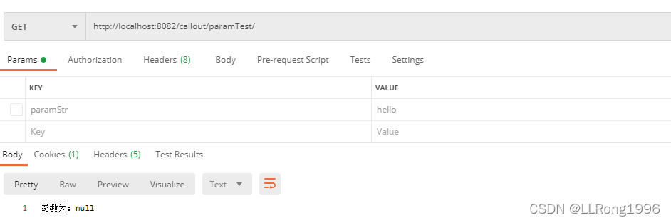 例如,请求参数名为paramStr,跟在路径中的问号后面http://localhost:8082/callout/paramTest/?paramStr=hello