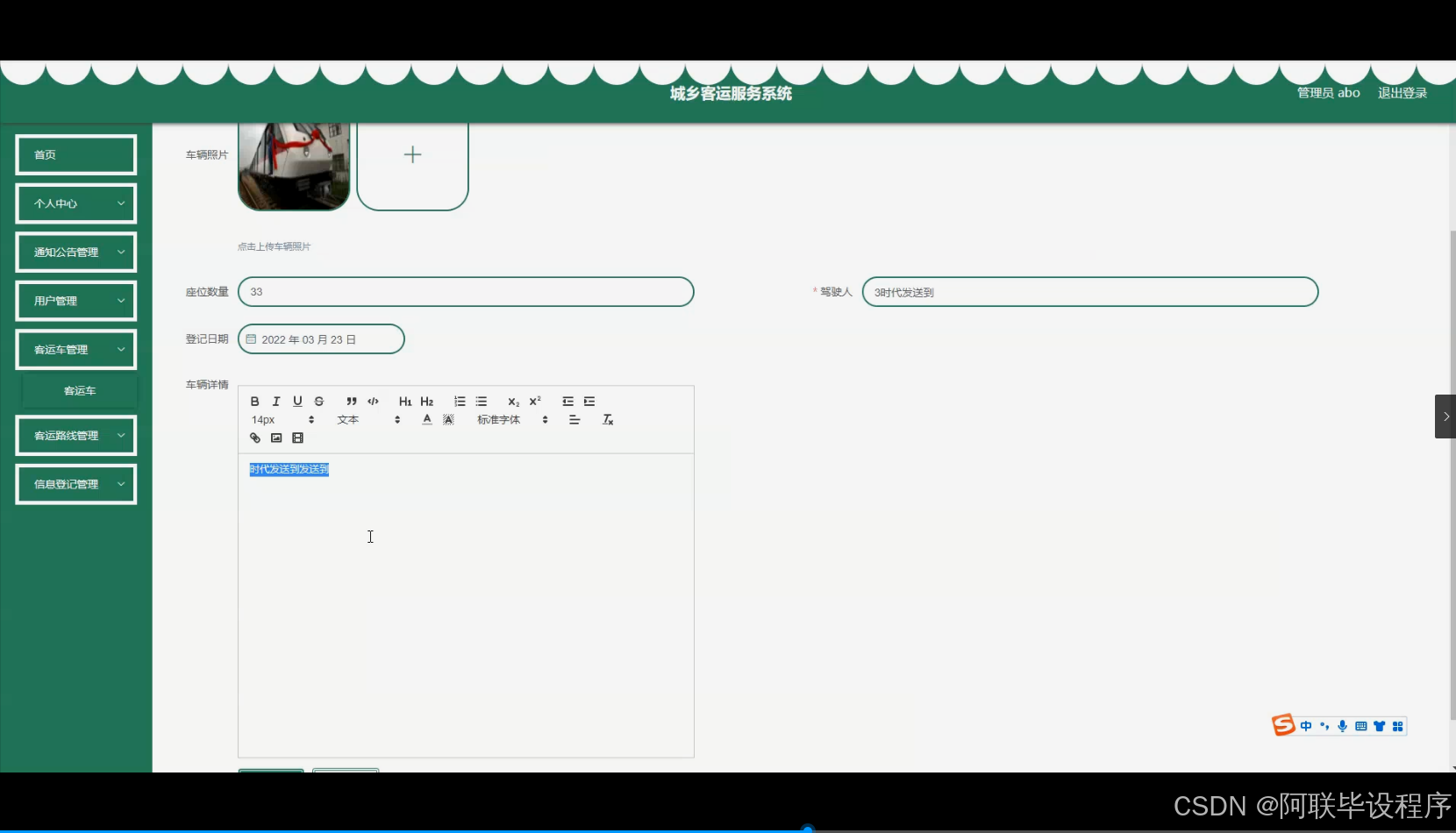 - 信息登记模块:研究如何建立完善的信息登记系统,确保客运车辆、司机、乘客等相关信息的准确登记。同时,要考虑信息的安全性和隐私保护,防止信息泄露。
