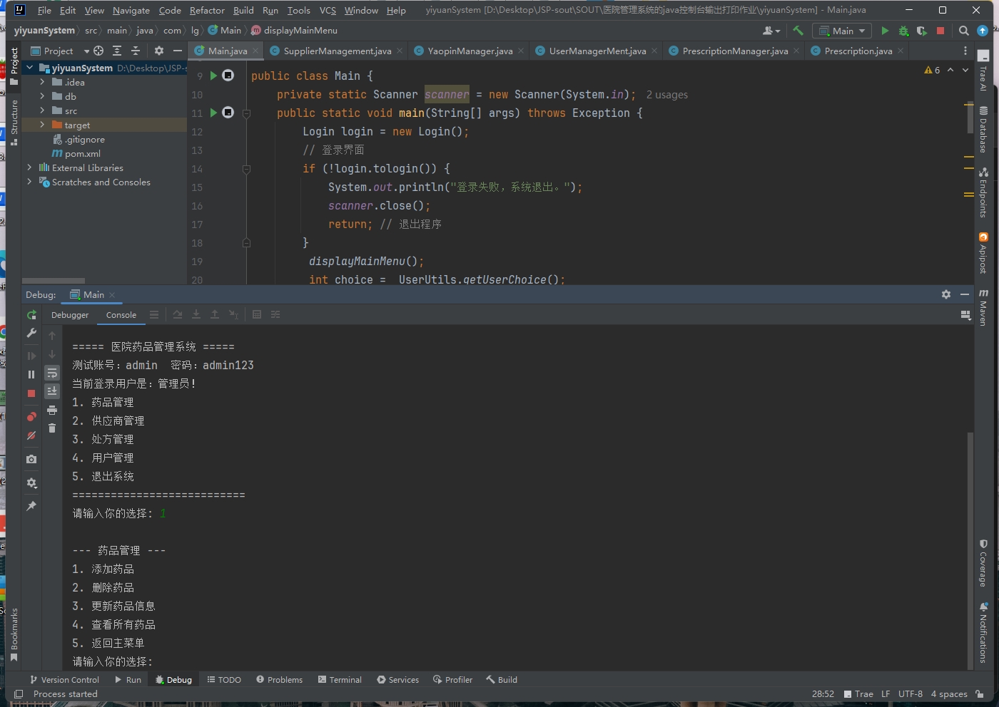 每个菜单下面分别提供增删改查,使用JDBC的方式,插入数据库;