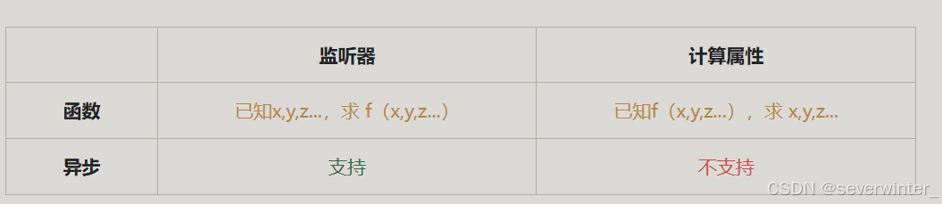 - 副作用: 侦听器通常用于处理数据变化时需要执行副作用的场景,比如发起异步请求、修改其他数据或与外部系统交互。