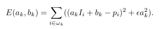 因为我们是要对原图像进行滤波,所以在满足上面局部线性的基础上,还需要使输出图像尽可能逼近原图像,作者采用的是最小二乘方法,使输出图像与原图像