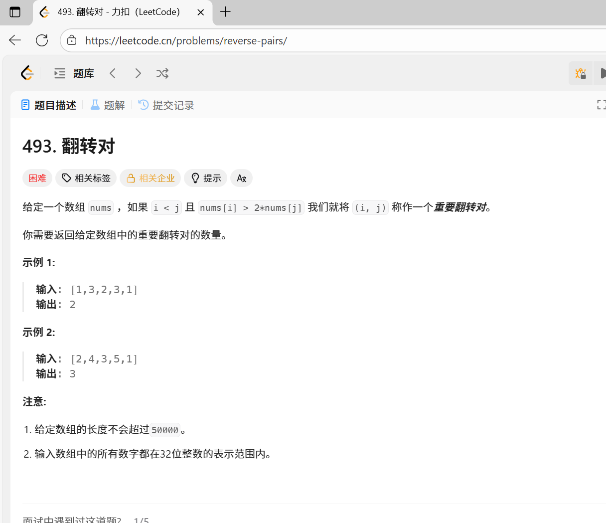 此时结果ret数量=左数组翻转对+右数组翻转对+一左一右数组合翻转对