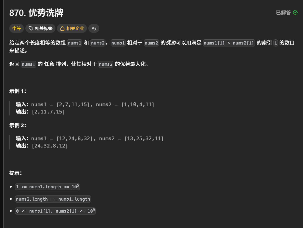 先把nums1排序 再把nums2的索引按照nums2索引的元素的大小排序