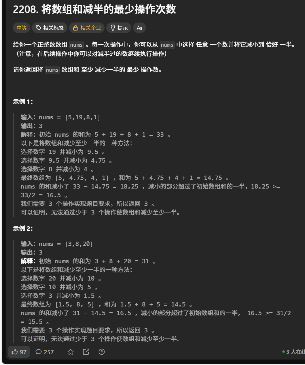 应该是要默认一定是可以把数组缩减为一半
