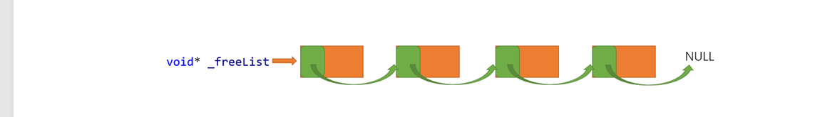 自由链表的节点是一个个内存块 头几个字节指向下一个空闲块
