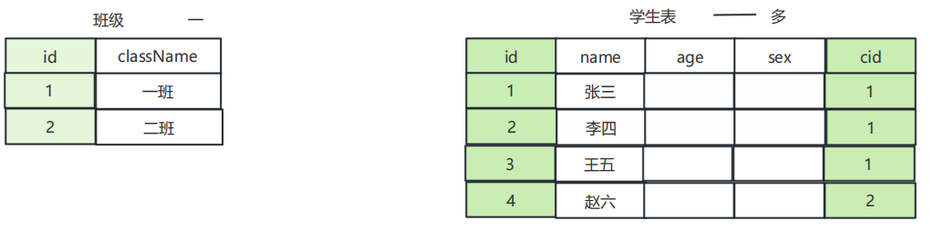 由于一个班级有多个学生,多个学生在一个班级内,所以这是一个一对多关系,“一”指班级表,“多”指学生表,关联字段cid放在学生表中让这两张表产生联系。