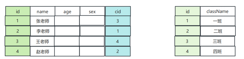 如图,左边的表和右边的表可以通过id联系起来,id分别是这两个表唯一标识符,所以可以添加一个关联字段cid来把这两个表联系起来。