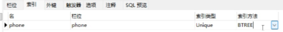 注意设置唯一约束时varchar类型的长度最好设置成100,而不是255,设置完栏位再去索引中按照第二张图进行设置。