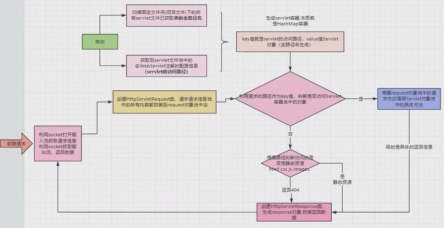 对象里的doGet方法此时用request接收,然后根据用户在方法内写下的具体行为,生成response,把response打回到Socket当中,Socket此时打开输出流OutputStream。