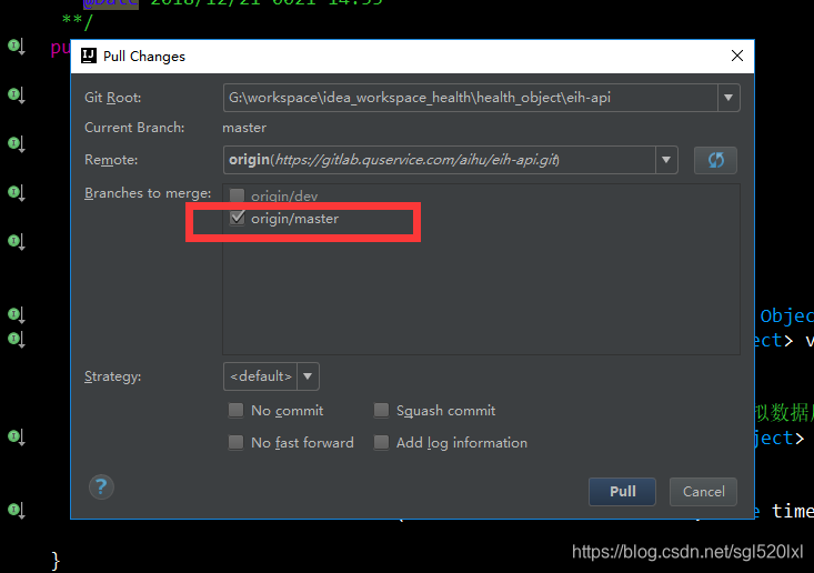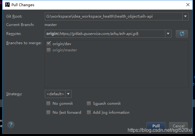 3:我们再去看看项目pull的时候,已经变成默认从dev分支pull了